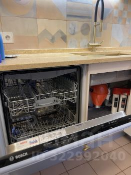 В квартире новый кухонный гарнитур и техника: раковина с измельчителем, кран питьевой воды с фильтрами, посудомоечная машина, электрическая духовка, варочная плита, вытяжка, холодильник, стиральная машина.
