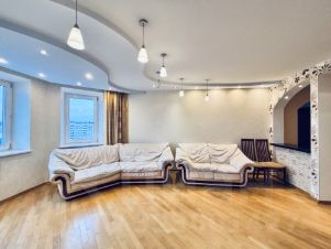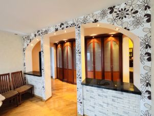 Планировка - прихожая, гостевой санузел, просторный зал совмещенный с большой кухней, с эркерными окнами, небольшой рабочий кабинет, две изолированные спальни с выходом на застекленный балкон, основная ванная и отдельная гардеробная.