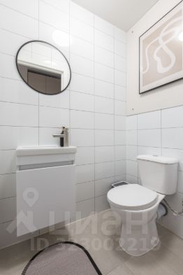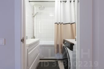 Современная ванная со стиральной машиной с функцией сушки, зеркалом с подсветкой и подогревом, полотенцесушителем — все для вашего удобства.
