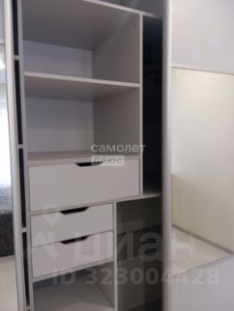 просторная прихожая с зеркалом и модульным шкафом для хранения;