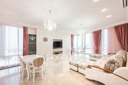 ЖК Дом на Мосфильмовской. Квартира с отделкой в современном стиле с элементами классики. Спланировано: Большая кухня гостиная с панорамными видами на знаковые достопримечательности столицы, включая Воробьёвы горы, МГУ и башни "Москва-Сити", хозяйская спальня со своей гардеробной и санузлом, 2 детские спальни, готсевая спальня, 2 санузла, постирочная, гардеробная при входе. Квартира оборудована: Сплит-системой (кондиционером), теплыми полами, интернетом (смарт ТВ есть). Установлена вся необходимая бытовая техника.