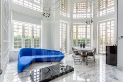 ID 45659. Просторный 2-уровневый таунхаус в одном из лучших жилых комплексов Москвы - Knightsbridge Private Park. В таунхаусе выполнен высококачественный ремонт в современном стиле: мебель Baxter, B&B, Zaha Hadid, бытовая техника Gaggenau. На полу итальянский мрамор, штучный дубовый паркет. Общая площадь: 640 кв. м Планировка: 1-й уровень включает просторную кухню, гостиную с высотой потолков 7,2 метра, кинозал, винную комнату, 2 спальни с ванными комнатами и гардеробными; 2-й уровень включает 4 спальни с ванными и гардеробными, кабинет. Предусмотрены приватное патио и 3 входа, в том числе с улицы. На внутренней территории разбит английский сад с зонами для отдыха, живыми изгородями и дорожками для пеших прогулок, открыт частный детский сад. В пешей доступности насыщенная инфраструктура центра столицы, городские парки Новодевичьи пруды и Усадьба Трубецких. Можно с детьми. Животные обсуждаемо.