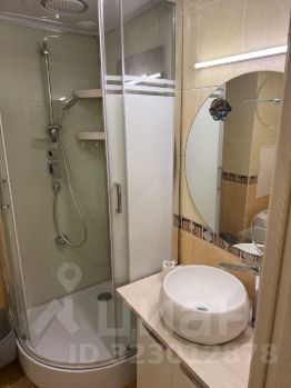 В квартире есть всё необходимое для комфортного проживания: кондиционер, холодильник и стиральная машина. Просторная кухня площадью 10 кв. м оборудована всей необходимой мебелью, бытовой техникой и комфортно и стильно объединена с гостиной. В комнате также есть мебель, большой гардеробный шкаф и кровать. Санузел совмещённый, в ванной комнате установлена душевая кабина.