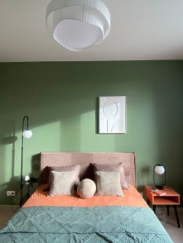 Квартира оборудована всем необходимым для комфортного проживания. Установлена 2 кондиционера. Просторная кухня-гостиная со встроенной техникой: духовой шкаф, индукционная варочная панель, холодильник, духовой шкаф, посудомоечная машина. Для удобства зонирования зон: кухни, столовой и гостиной большой раскладывающийся диван. Удобная прихожая с вместительным шкафом. Уютная спальня с гардеробной и двухспальной кроватью (ортопедический матрас).