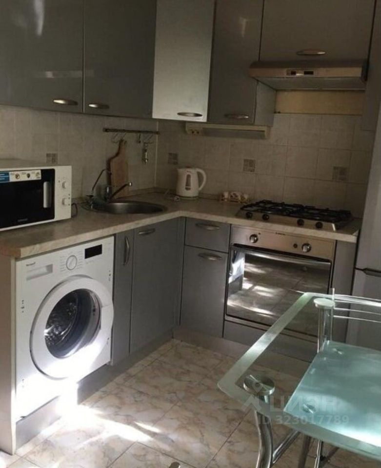 В кухне - кухонный гарнитур, плита с духовкой, стиральная машина автомат, большой 2-х камерный холодильник.