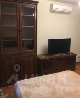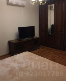 В комнате - 2-х спальная кровать с матрацем, большой шкаф для одежды, шкаф книжный, журнальный стол, тумба под телевизор, телевизор, кондиционер.