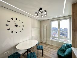 Общая площадь квартиры составляет 54 кв. м, из них 11 кв. м — кухня. Высота потолков — 2,6 м. Дизайнерский ремонт выполнен из качественных материалов, что позволяет новым жильям сразу заселиться без дополнительных вложений. Окна выходят на улицу, комнаты изолированы, квартира не угловая.