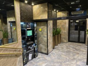 В холле здания есть зона коворкинга с кофе-автоматом, круглосуточно находится охранник.