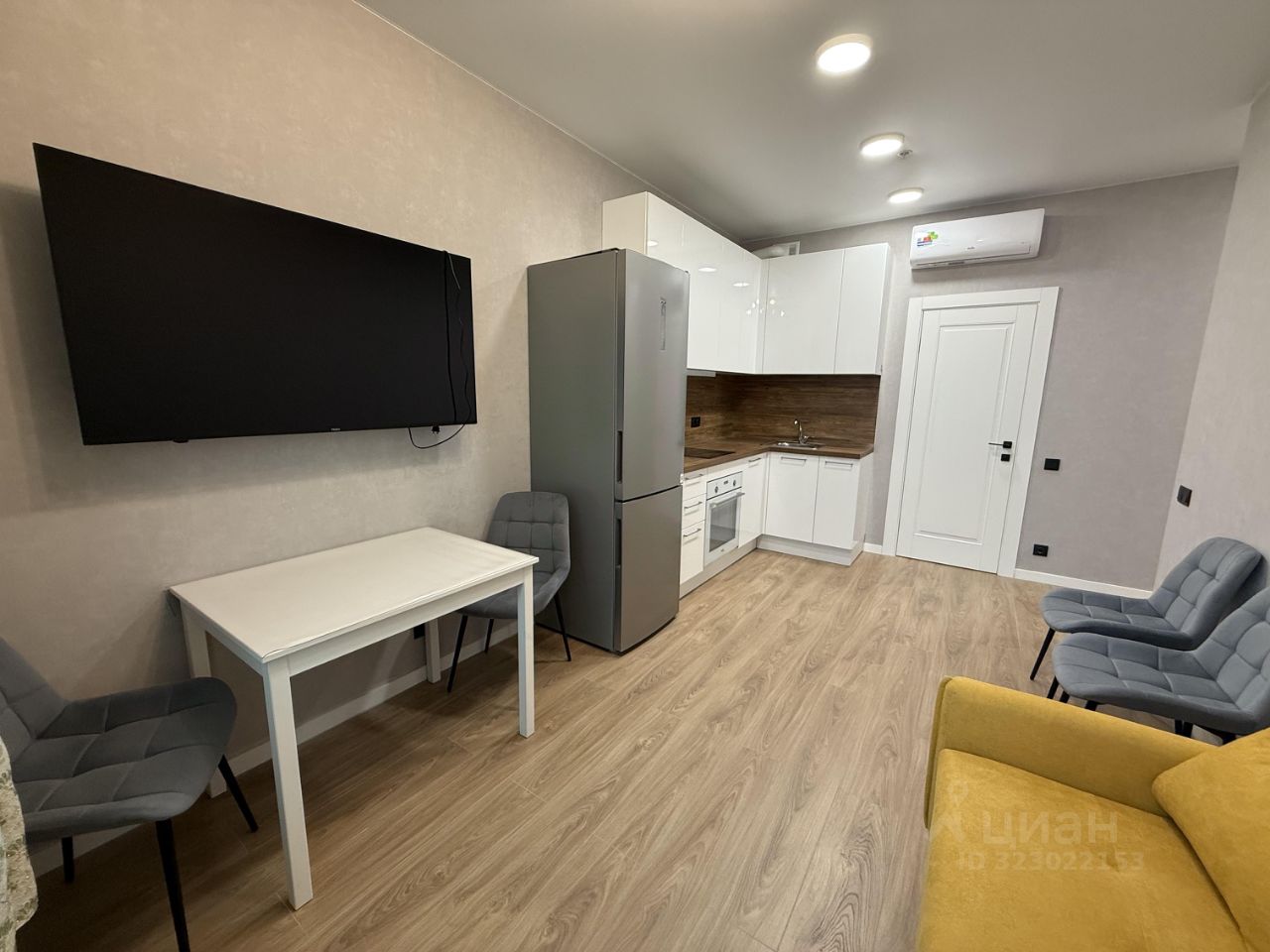 В квартире есть всё необходимое для комфортного проживания: кондиционер, холодильник, посудомоечная машина, телевизор и стиральная машина. Уютная кухня и комната обставлены мебелью. Санузел совмещённый, с ванной. Все элементы интерьера продуманы до мелочей, чтобы создать атмосферу уюта и стиля. Также в квартире имеется большая гардеробная во всю стену.