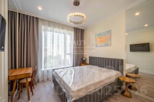 В квартире сделан дизайнерский ремонт с использованием дорогостоящих материалов, мебель из массива дерева, вся необходимая техника включая посудомоечную машину, теплый пол, в гостиной ортопедический диван со сменными чехлами, можно менять цвет. В каждой комнате установлен кондиционер, Система защиты от протечек "Нептун", система пожаротушения, много мест для хранения.