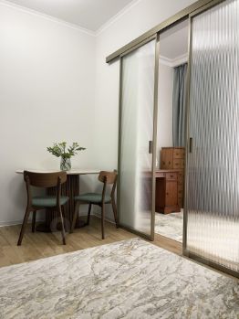 Установлен кондиционер, стиральная машина с функцией сушки, теплые полы, в гостиной премиальный диван фабрики Dienne (Италия) с механизмом французская раскладушка, ванная Delice ( Франция), высокие двери Union, нагреватель воды, разные сценарии освещения, много мест для хранения, широкие окна.