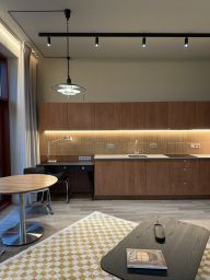 Апартамент только после завершенного дизайнерского ремонта! Еще никто не жил! Интересная планировка с двумя большими окнами в гостиной с видом на город. Окна выходят в сторону железной дороги, но при закрытых окнах тишина. Есть две гардеробные для хранения вещей, большая посудомоечная машина, духовой шкаф с функцией микроволновой печи, широкая кровать 180 см. Старались продумать максимально все для комфортного проживания. В апартаменте разные сценарии освещения, регулируются с телефона по яркости для создания различных сценариев освещения.