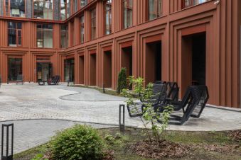 Стильное здание малой этажности с уютным внутренним двором, круглосуточной охраной, лобби. На первом этаже кофейня с вкусной едой.