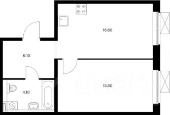 Евро-планировка квартиры с небольшой спальней и большой кухней-гостинной.
