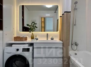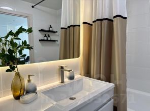 Просторный совмещенный санузел: ванна, стиральная машина с функцией сушки, электрический полотенцесушитель,