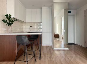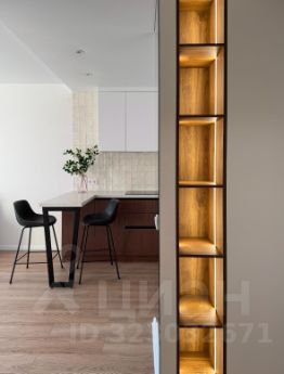 Функциональная кухня со встроенной техникой (посудомоечная машина, холодильник, вытяжка, варочная поверхность) и множество зон хранения.
