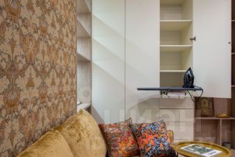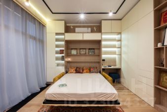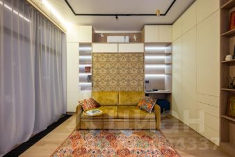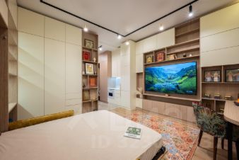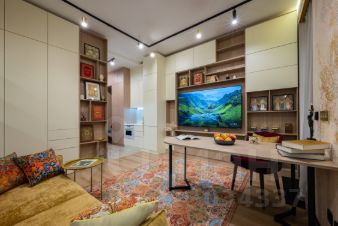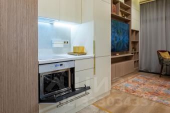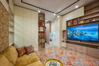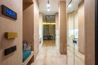 Продуман каждый сантиметр площади. Даже стены содержат функционал для хранения и экспозиции. Вся мебель изготовлена на заказ. В наличии: стиральная машина с функцией сушки, посудомоечная машина, индукционная варочная панель, холодильник Full No Frost, духовой шкаф с функцией микроволновой печи, огромный 4К Смарт-ТВ 75", инверторный кондиционер Energolux, видеодомофон, мини-станция Алиса.