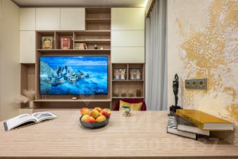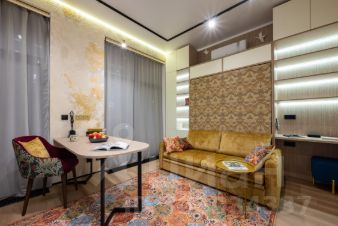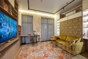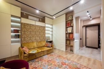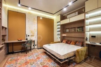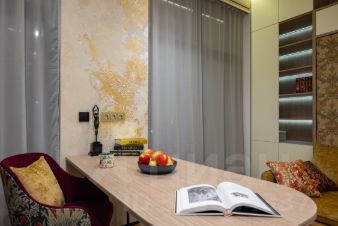 Обстановку дополняют кровать-трансформер от премиальной фабрики Olissys, несколько рабочих зон, эксклюзивный стол трансформер, розетки оснащенные USB и Type-C входами, моторизированные жалюзи с пультом управления и тёплые полы с управлением по Wi-Fi в каждой зоне апартаментов.