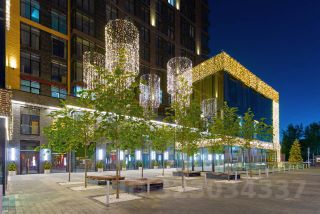 Территория комплекса включает собственный сквер с фонтанами от бюро NEXT, арт-объекты, архитектурную подсветку зданий и территории, а также, приватные зоны отдыха для резидентов во дворах и холлах ЖК, украшенные предметами искусства и картинами.