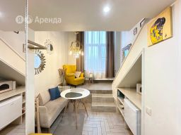 Сдаётся студия площадью 26 кв.м. с дизайнерским ремонтом на 1 этаже в 36-этажном доме на срок от 11 месяцев. Из техники есть: