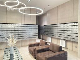 Дом - монолитный, окна выходят во двор. Есть консьерж. В подъезде 6 лифтов - 2 грузовых и 4 пассажирских. Есть подземная парковка.