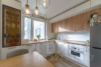 На кухне: встроенный кухонный гарнитур со встроенной техникой (варочная панель, духовой шкаф, посудомоечная машина, СВЧ), вместительный холодильник. Установлен интегрированный фильтр питьевой воды.