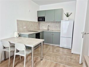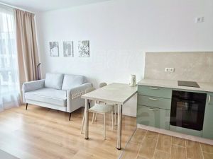 Евродвушка (кухня-гостиная, спальня, совмещенный санузел). В квартире дизайнерский ремонт. Вся мебель и бытовая техника НОВЫЕ. В наличии: телевизор 40, стиральная машина, вертикальный пылесос, холодильник, варочная панель, духовой шкаф, микроволновая печь, электрочайник, гладильная доска, складная сушилка для белья, интернет. В спальне большой шкаф с антресолью, комод, комфортная большая кровать 160х200. В гостиной дополнительные шкафы, удобный диван и просторное рабочее место с анатомическим креслом.