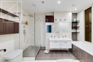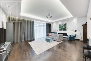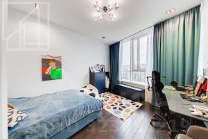 Планировка: кухня-гостиная с обеденной зоной, 4 спальни, три полноценных совмещенных и гостевой с/у, 3 гардеробные, постирочная, лоджия. Квартира меблирована, укомплектована всей необходимой для жизни бытовой техникой. Приточно-вытяжная вентиляция, подогрев полов, кабельное ТВ, высокоскоростной интернет.