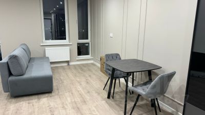 В квартире совершенно новая мебель : кухонный гарнитур, шкаф, обеденный стол, стулья, кровать, диван, вся необходимая новая техника: холодильник, духовой шкаф, индукционная варочная панель, СВЧ печь, вытяжка, посудомоечная машина, стиральная машина, телевизор.