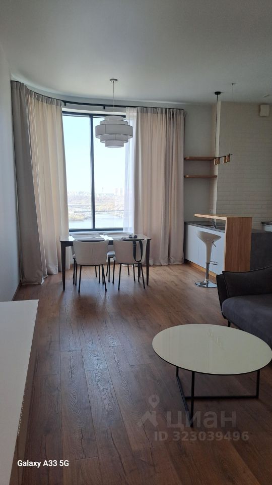 Апартаменты расположены на 20-м этаже 26-этажного дома, с которого открывается потрясающий вид на город и реку. Территория ЖК включает набережную.