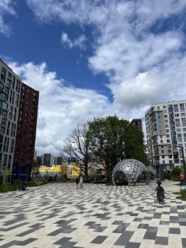 Очень уютный и живописный ЖК Скандинавия, разделенный на север, юг и центр. Дом находится в центре, который застраивают в последнюю очередь. Т.е. весь ЖК уже обжитой, есть все необходимое и даже больше - прикольная центральная площадь с Муми Тролями, кафе и магазины, салоны, химчистки. В доме есть Пятерочка и Магнит, пункты выдачи ВБ и ОЗОН. Рядом с метро гипермаркет Глобус.