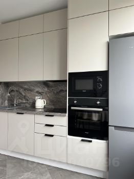 - вместительный кухонный гарнитур со встроенной техникой: посудомоечная машина, индукционная плита, вытяжка, духовой шкаф, микроволновка, большой отдельностоящий холодильник