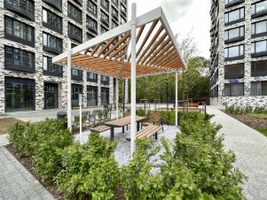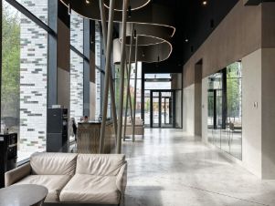 - Жилой комплекс бизнес-класса - огороженная охраняемая территория, видеонаблюдение, вход на территорию через центральный ресепшн; дизайнерское лобби с лаунж-зоной и камином, где в уютной атмосфере можно отдохнуть и бесплатно попить кофе; колясочные, места для хранения велосипедов, лапомойки, туалеты в подъездах, подземный и гостевой паркинги; двор без машин, благоустроенная территория с ландшафтным дизайном, разделённая на общественную зону, с амфитеатром, и приватную, с детскими, спортивными площадками и тренажёрами; в одном из корпусов - комьюнити центр с коворкингом, кино и детской зоной.
