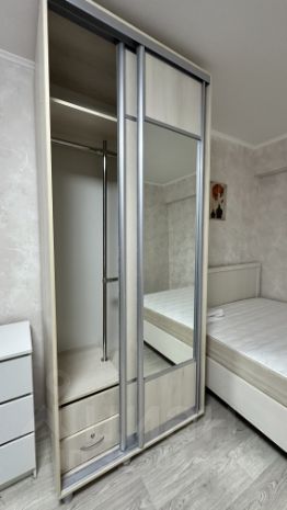 Комната: новый шкаф зеркальный, кровать двуспальная с матрасом ортопедическим, диван раскладной с ящиками для хранения, стол письменный, комод, телевизор с Smart TV,
