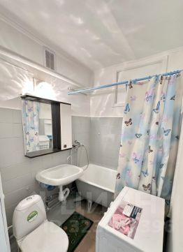 Совмещенный сан. узел; ванная отделана плиткой, установлена стиральная машина-автомат (аристон), раковина , зеркало.