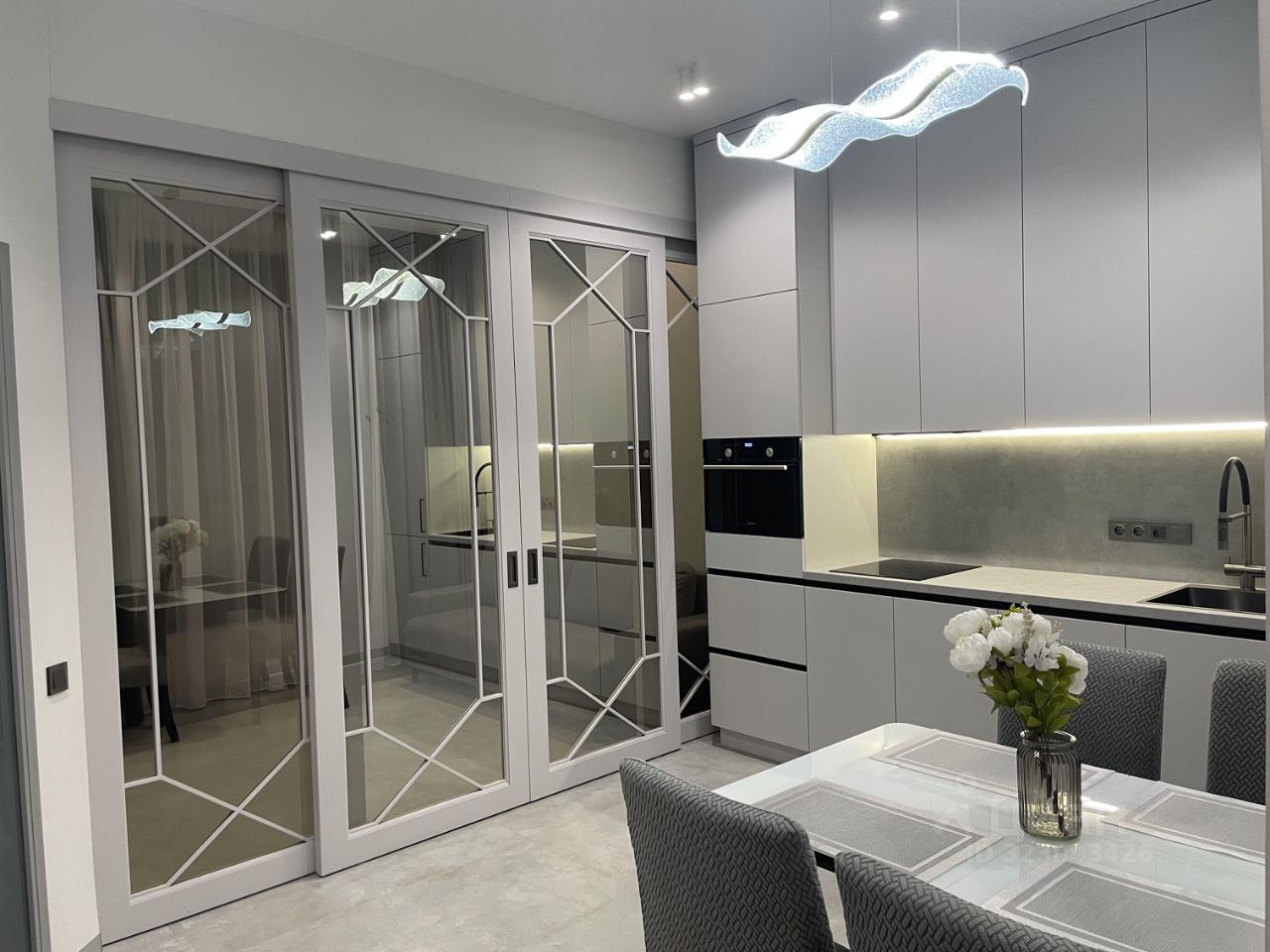 Квартира полностью меблирована, есть вся необходимая техника (все абсолютно новое): 2 кондиционера, 3 телевизора, посудомоечная машина, стиральная машина с функцией сушки, увеличеный встроенный холодильник с зоной свежести и морозильной камерой, встроенная духовка с функцией свч, индукционная варочная панель. В кухне есть вся необходимая для проживания посуда.