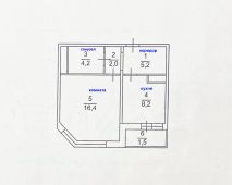 Планировка: большая комната с эркерным окном, просторный коридор, кухня с выходом на лоджию и совмещенный санузел.