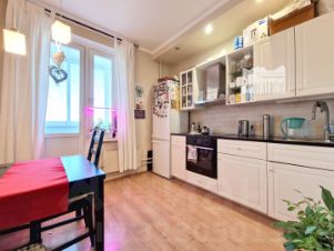 Современная стильная кухня оборудована техникой Miele и Gorenje, имеет выход на застеклённую лоджию.