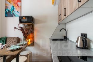 оборудованная кухня с индукционной плитой, холодильником, микроволновкой и электрическим чайником;