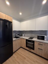 Квартира планировкой 2-евро, 34.3 кв.м. в новом жилом комплексе "Первый Дубровский". Укомплектована всей новой необходимой мебелью и техникой: встроенная варочная панель, духовой шкаф, вытяжка, микроволновая печь, холодильник, телевизор, ПММ, СМ с сушкой и даже робот-пылесос.