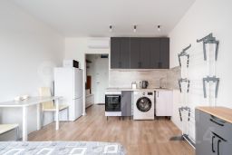 Всё для Вашего комфорта! Кровать 160х200 с подъемным механизмом, ортопедическим матрасом ASKONA и мягким изголовьем. Полноразмерные холодильник и стиральная машина, духовка, плита, мощный кондиционер Electrolux, СВЧ, телевизор со смарт-тв. Удобный стол и мягкие стулья подойдут как для приема пищи, так и для работы. Много мест для хранения: шкафы, комод, вместительный кухонный гарнитур, вертикальная раскладная сушилка, ящики под кроватью. Имеется посуда. Быстрый интернет уже подключен. В квартире тихо, никаких неудобств от соседей.