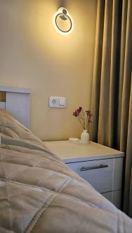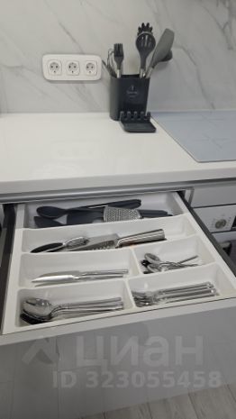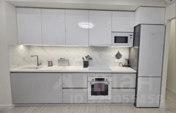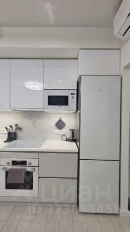 Просторная кухня совмещена с гостиной площадью 18 кв. м и оснащена всей необходимой мебелью и техникой (вся техника в квартире Bosch): холодильником, микроволновой печью, варочной панелью, духовым шкафом, посудомоечной машиной. В комнате и кухне-гостиной есть кондиционер. В квартире есть всё необходимое для комфортного проживания!