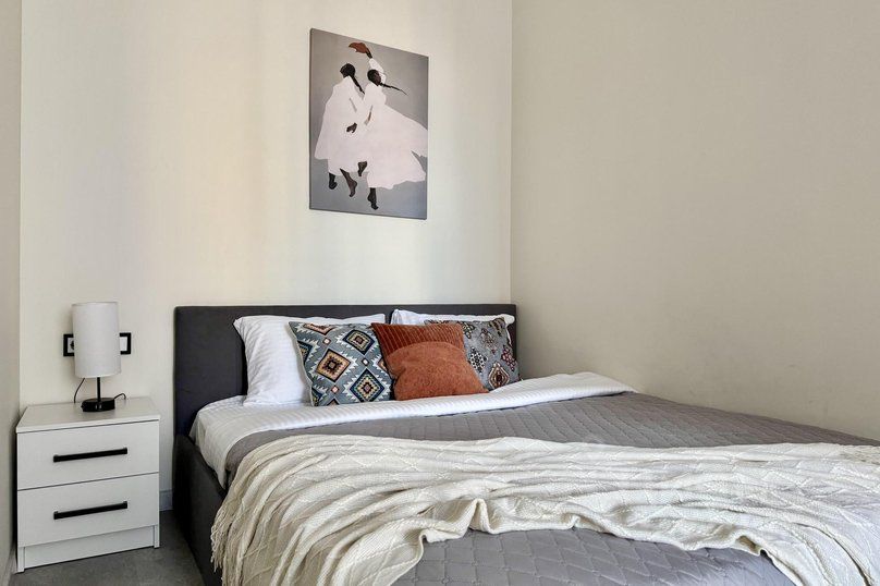 Просторная кровать шириной 160 см с ортопедическим матрасом, диван-кровать (140 см). Для каждого гостя предусмотрено качественное постельное белье (хлопок, страйп-сатин), подушка и отдельное одеяло, комплект полотенец и средства гигиены;