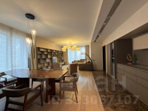 В квартире сделан дизайнерский ремонт с использованием качественных материалов. Планировка включает просторную кухню площадью 60 кв. м, полностью оборудованную необходимой техникой: холодильником, посудомоечной машиной, кондиционером, телевизором и стиральной машиной. В комнатах и на кухне есть современная мебель. Санузел включает ванну и душевую кабину, поэтому можно выбирать, как расслабиться после долгого дня. Окна выходят во двор, а значит, в квартире тихо и уютно.