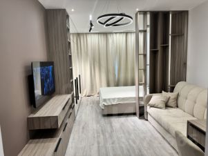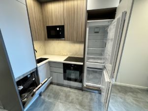посудомоечной машиной,встроенным холодильником,СВЧ,духовым шкафом ,фильтром для очистки воды.ТВ.
