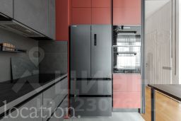 - Духовой шкаф и микроволновая печь De Dietrich, холодильник Toshiba 90 см, посудомоечная машина Electrolux, смеситель Grohe с функцией мгновенной подачи кипятка.