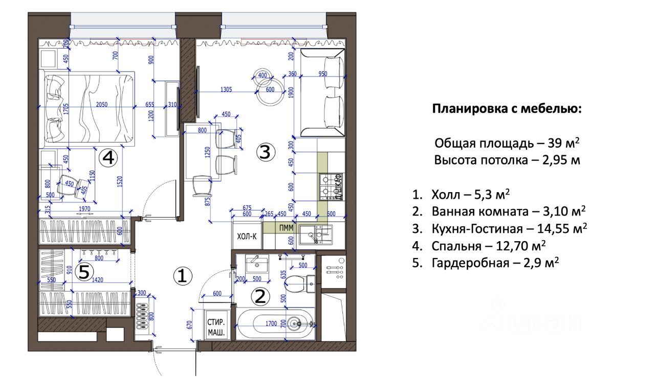 В квартире предусмотрены все удобства (мебель, электробытовая техника, гардеробная).