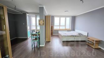В квартире сделан косметический ремонт, что придаёт ей свежий и аккуратный вид. Пространство студии организовано с учётом функциональности: здесь есть всё необходимое для комфортной жизни. В комнате установлена мебель, а также телевизор для вечернего отдыха. На кухне есть холодильник, а в ванной комнате — стиральная машина.