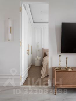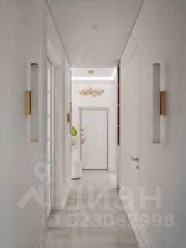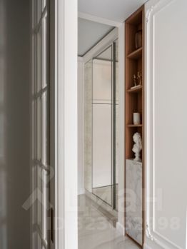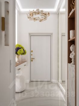С первых шагов вас встречает просторная прихожая: консоль, зеркало, мягкий свет — и сразу ощущение масштаба, потому что открывающийся на город и реку вид видно с порога.