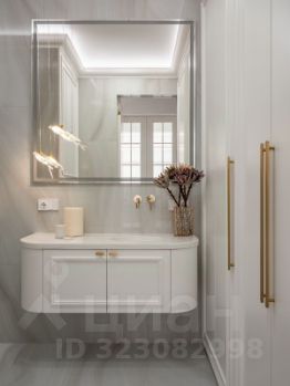 объединяет ванну и душевую, подсвеченное зеркало и встроенные шкафы для хранения. Всё функционально, но при этом эстетично.